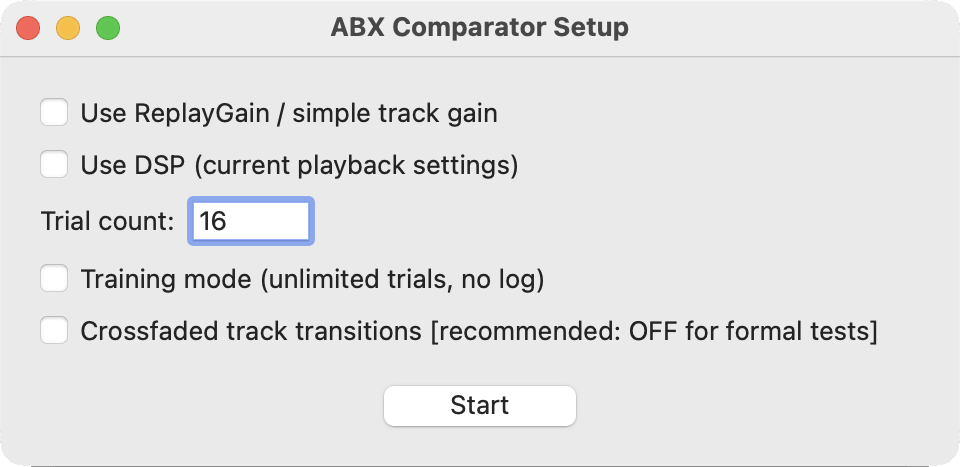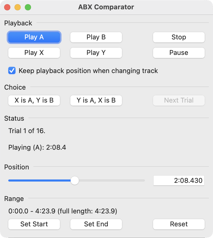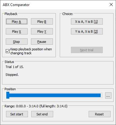 Screenshots: ABX Comparator