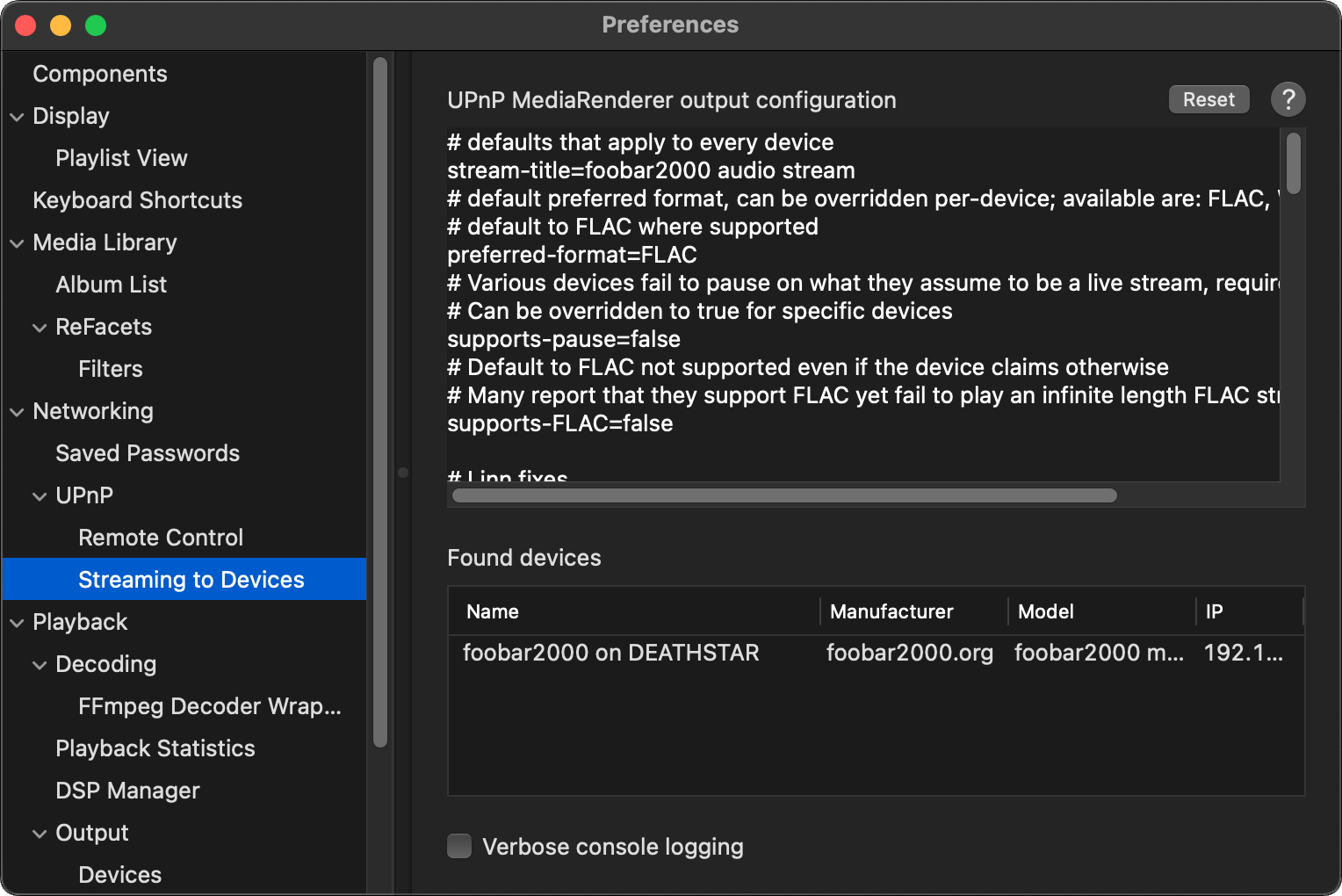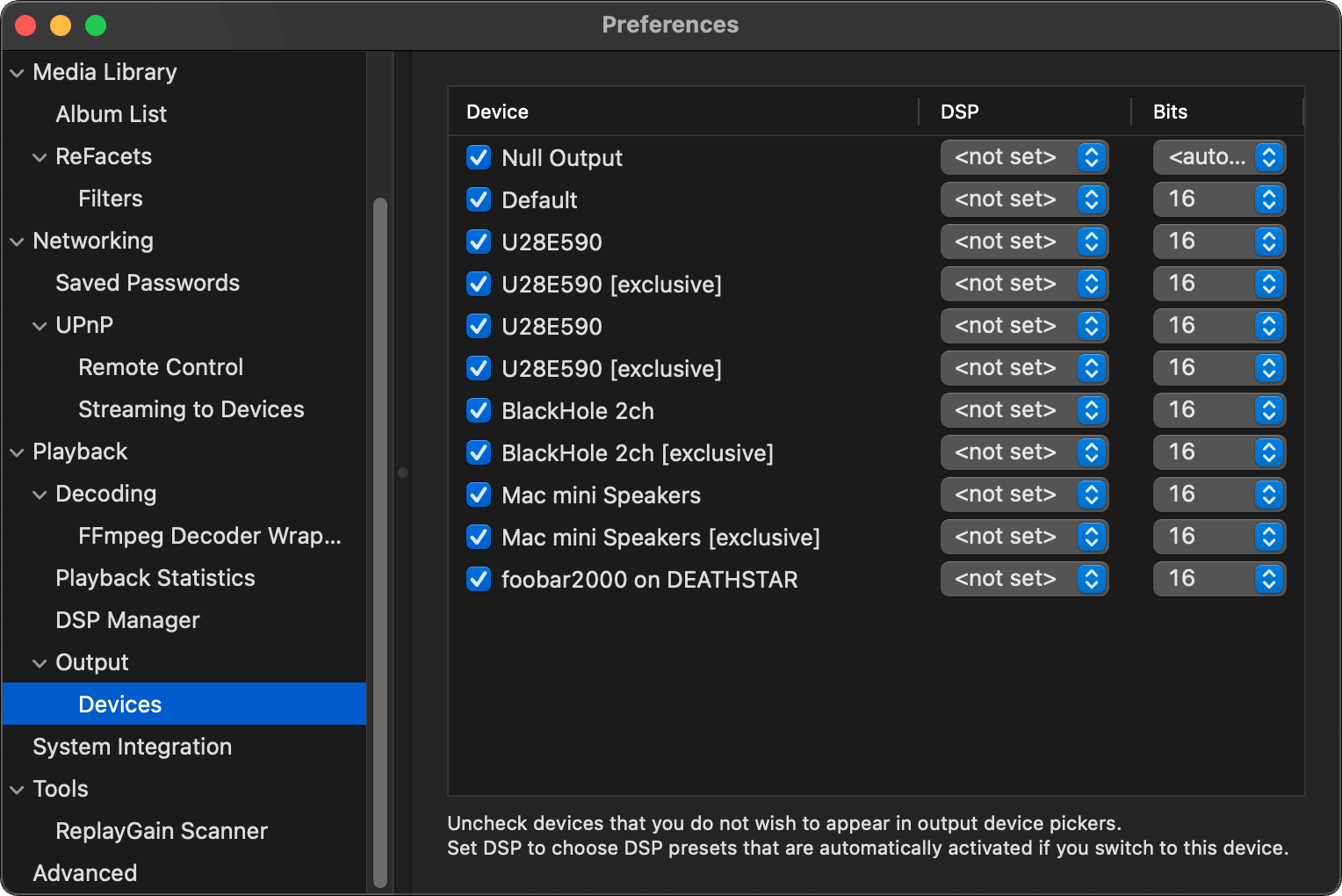 Preferences: Output Devices