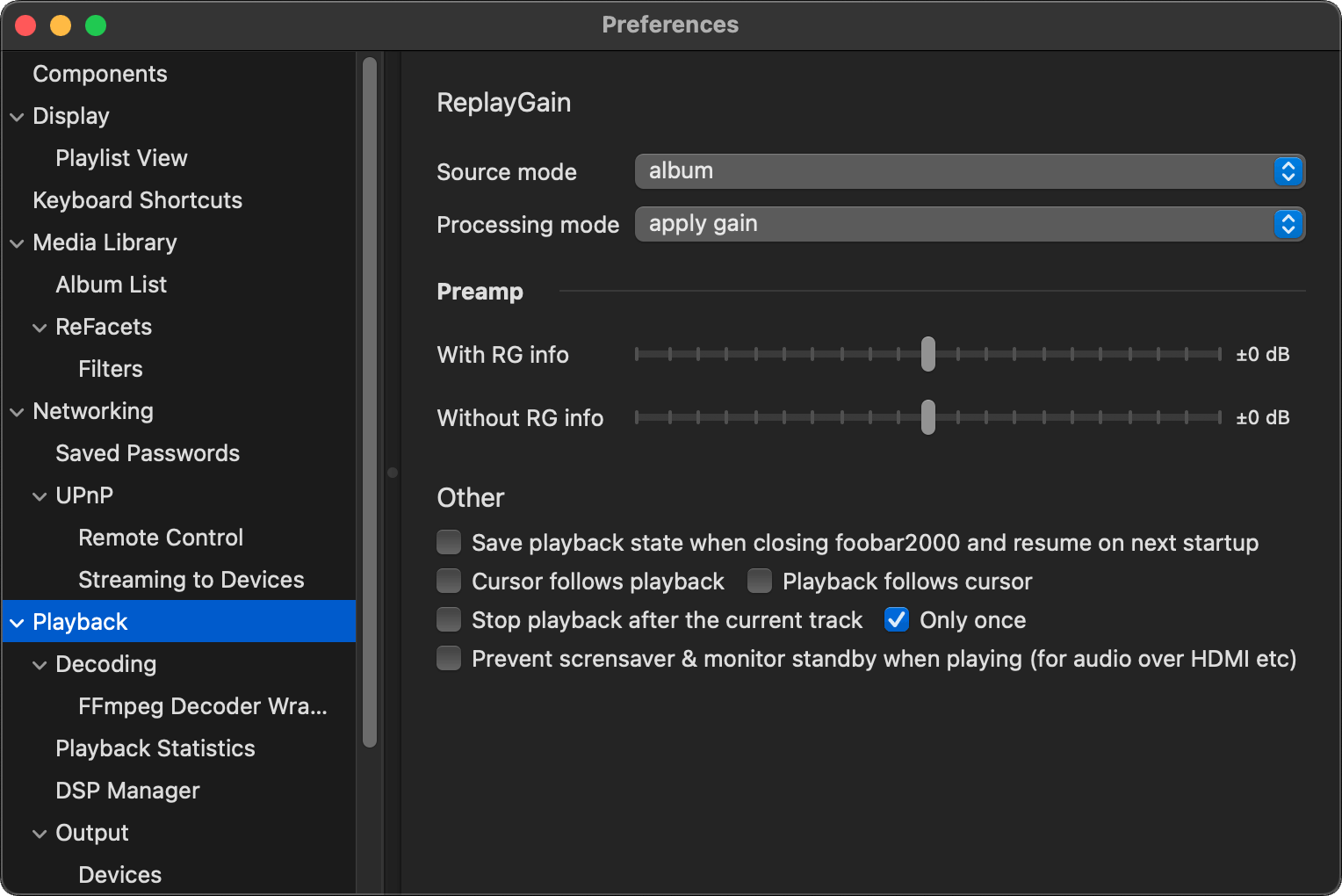 Preferences: Playback