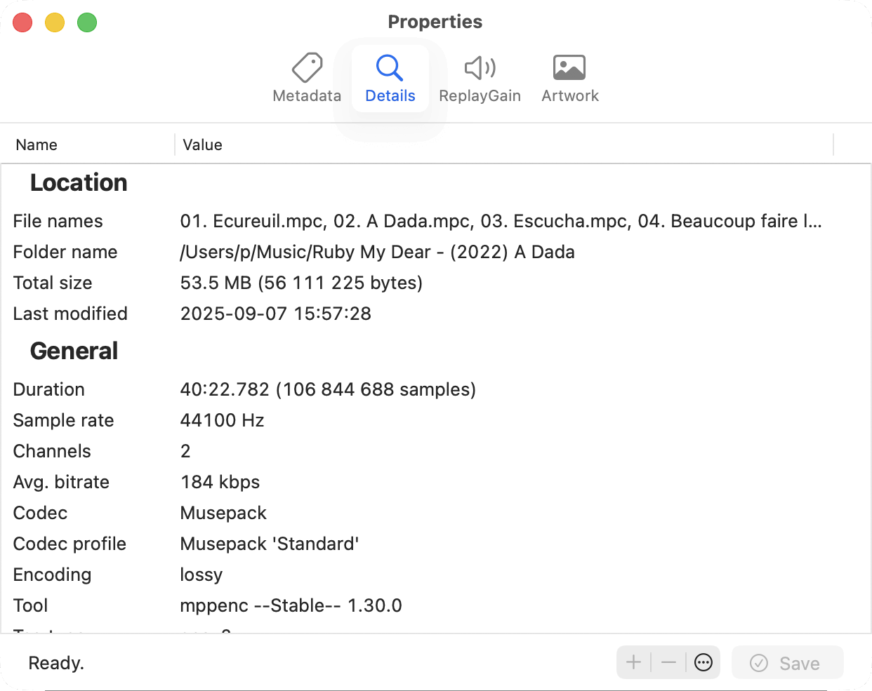 Properties dialog / ReplayGain